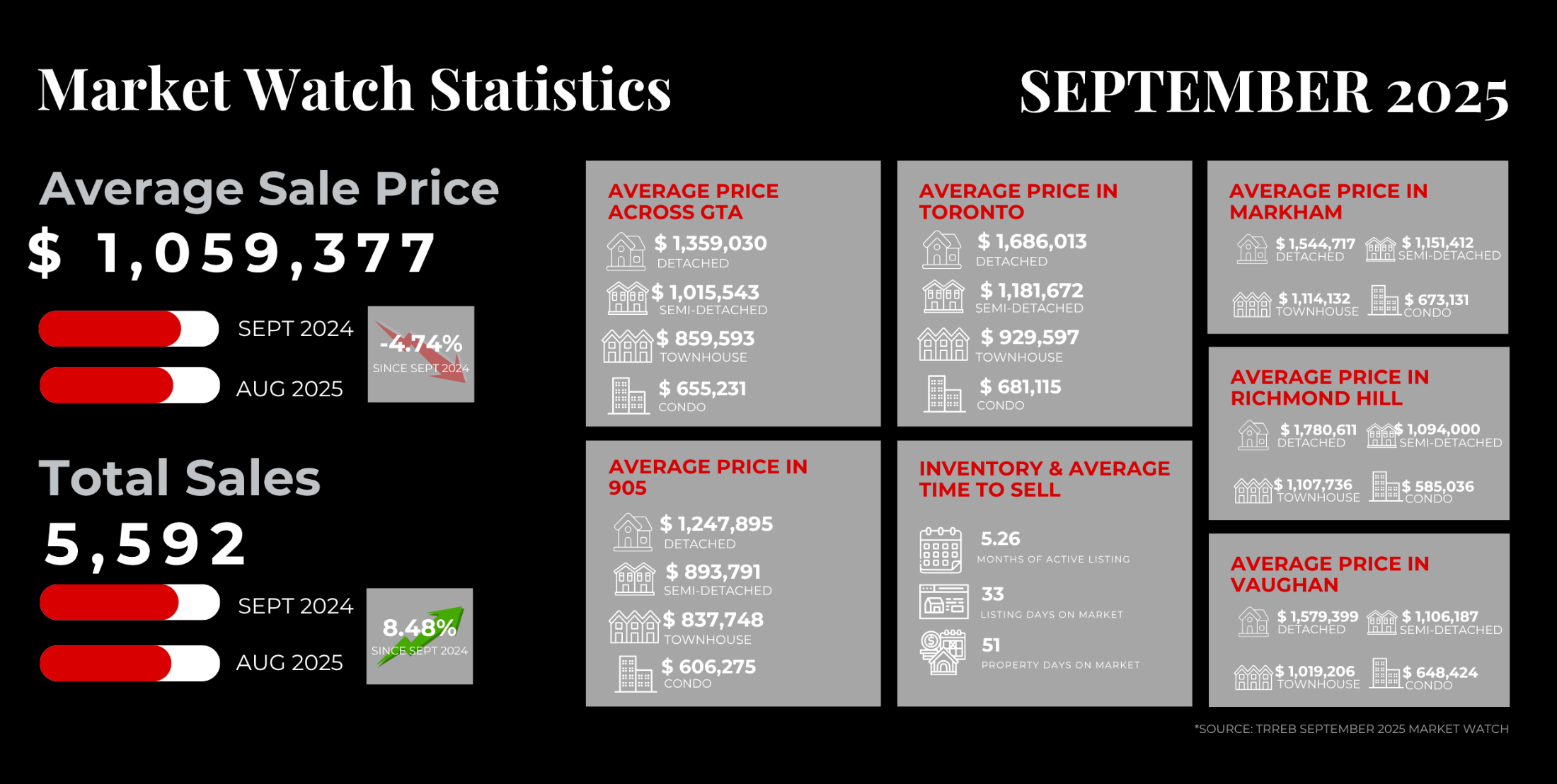 The latest October 2025 stats from the Toronto Regional Real Estate Board (TRREB) paint a clear picture: the Greater Toronto Area (GTA) housing market continues to lean in favor of buyers. With home sales dipping and new listings climbing, those who are ready to make a move could find opportunities that simply weren’t available a year ago.